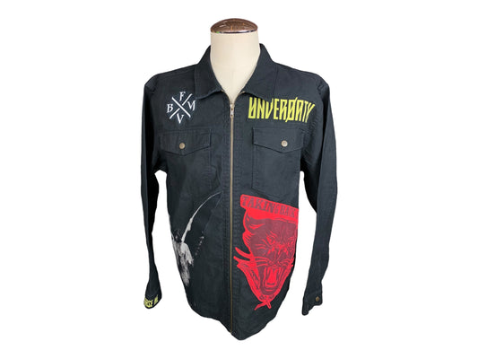 Metalcore Mash Up Denim Canvas Zip Jacket Custom Rework XL