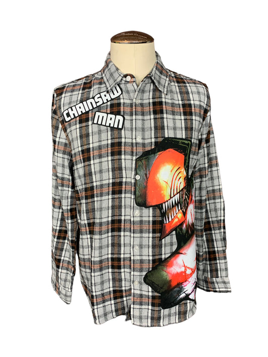 Chainsaw Man Flannel Shirt Custom Rework XL